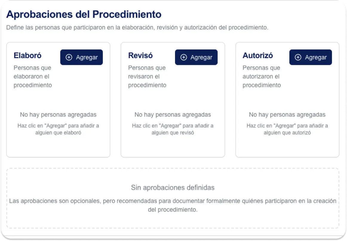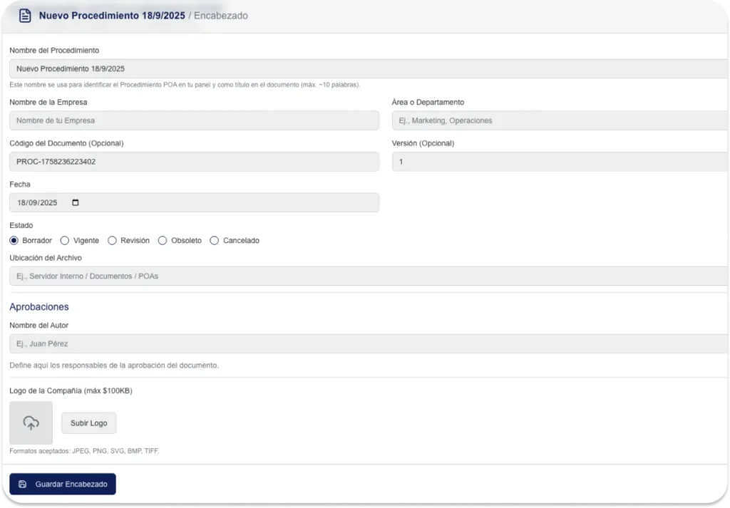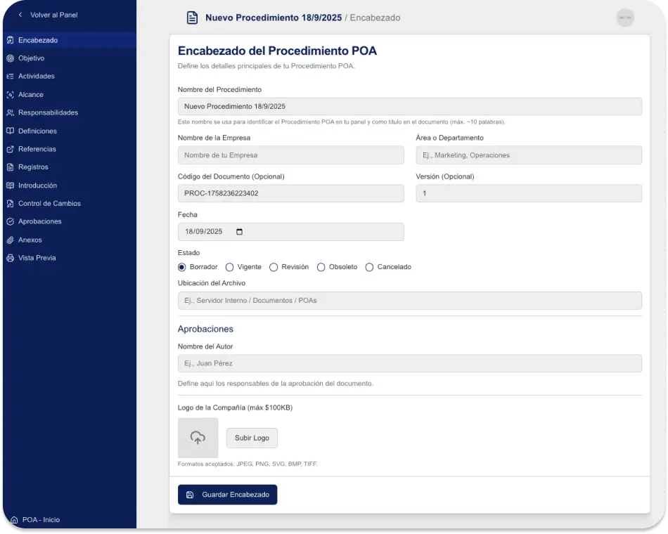 No, necesitas conocer tus procesos, nuestras preguntas guiadas y plantillas expertas te llevan paso a paso a crear procedimientos profesionales.