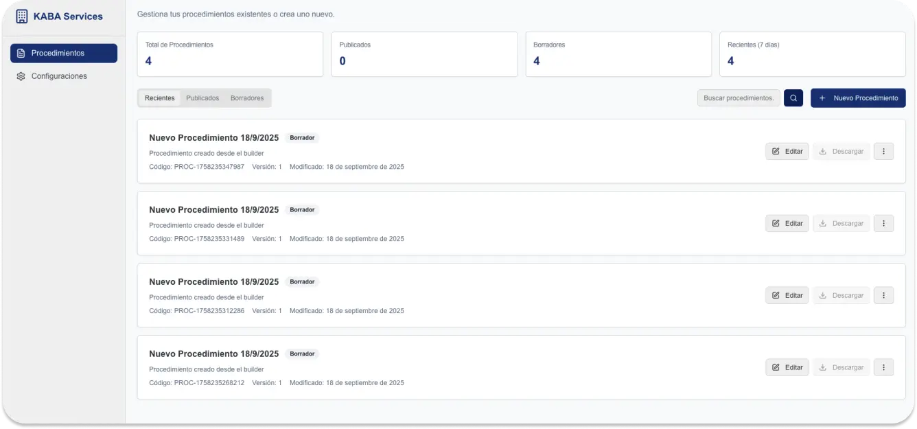 KABA automatiza y guía la creación de tus Procedimientos, pero puedes combinarlo con nuestra asesoría remota.